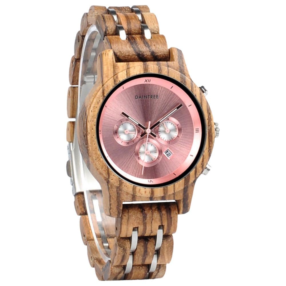 Daintree Alishan - Montre Femme en bois zébré - Chronographe - Rose