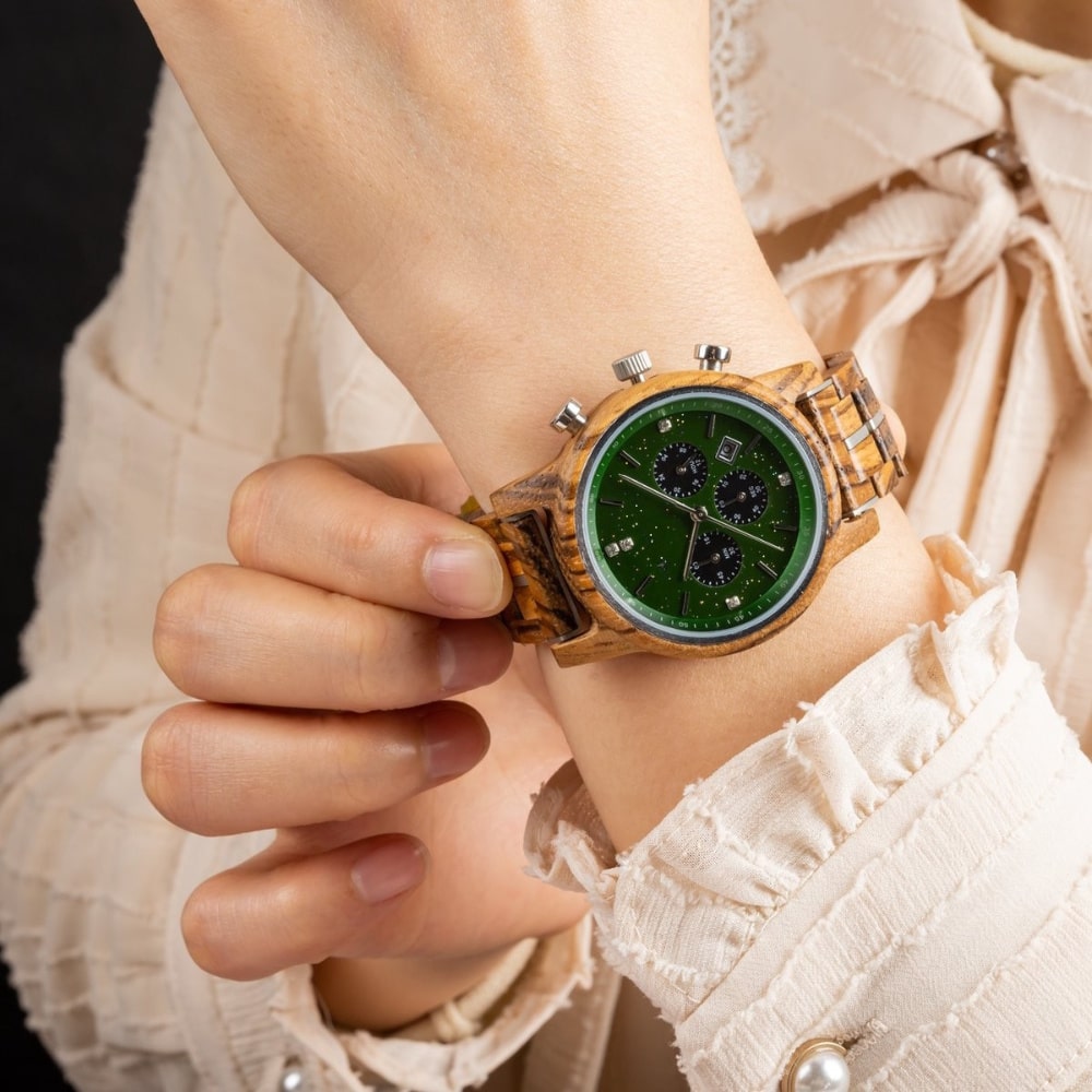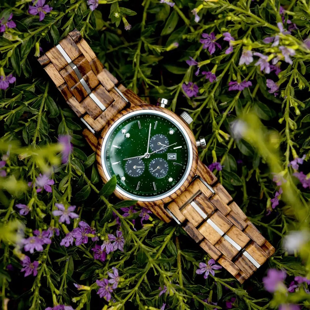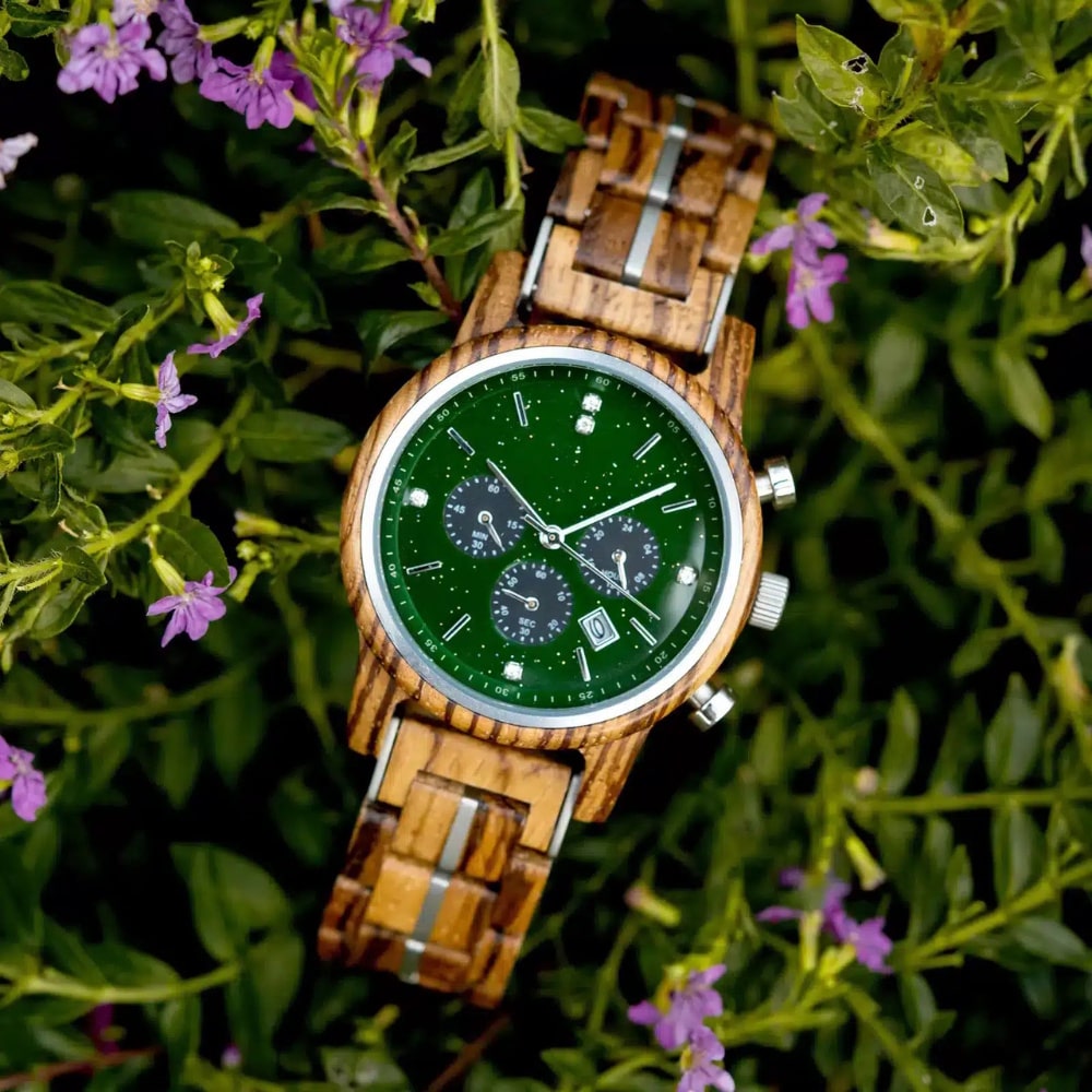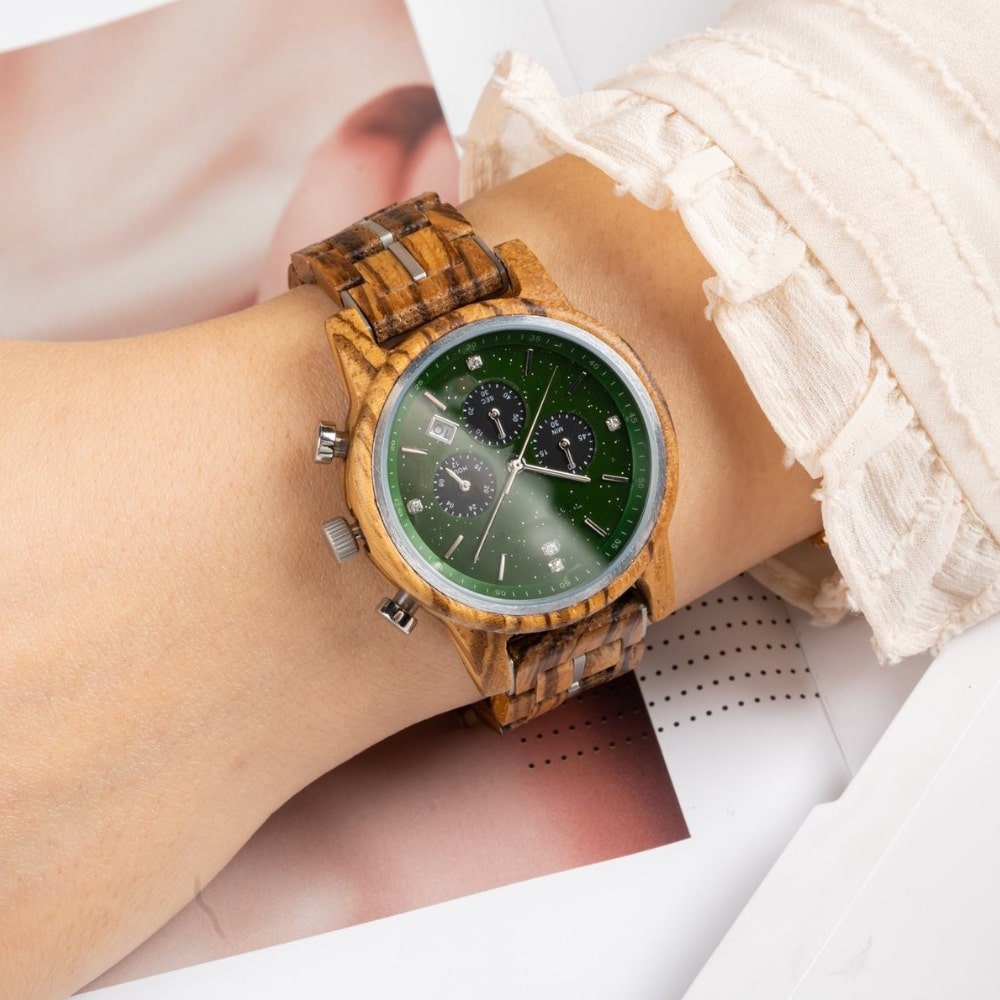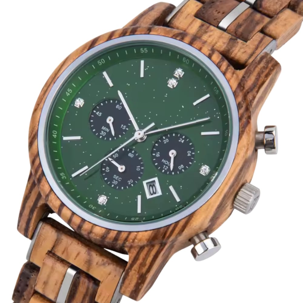 Daintree Plit - Montre Femme en bois zébré Chronographe et Date - Vert